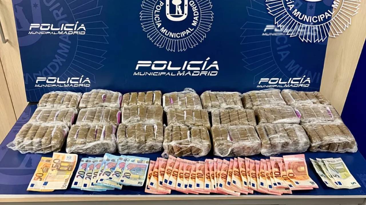 Durante el registro del vehículo, los agentes localizaron 8,9 kilos de hachís, además de diversos efectos relacionados con la actividad del detenido. Entre el material intervenido se encontraban 600 euros en efectivo, teléfonos móviles, tarjetas bancarias y documentación vinculada a movimientos económicos recientes.
