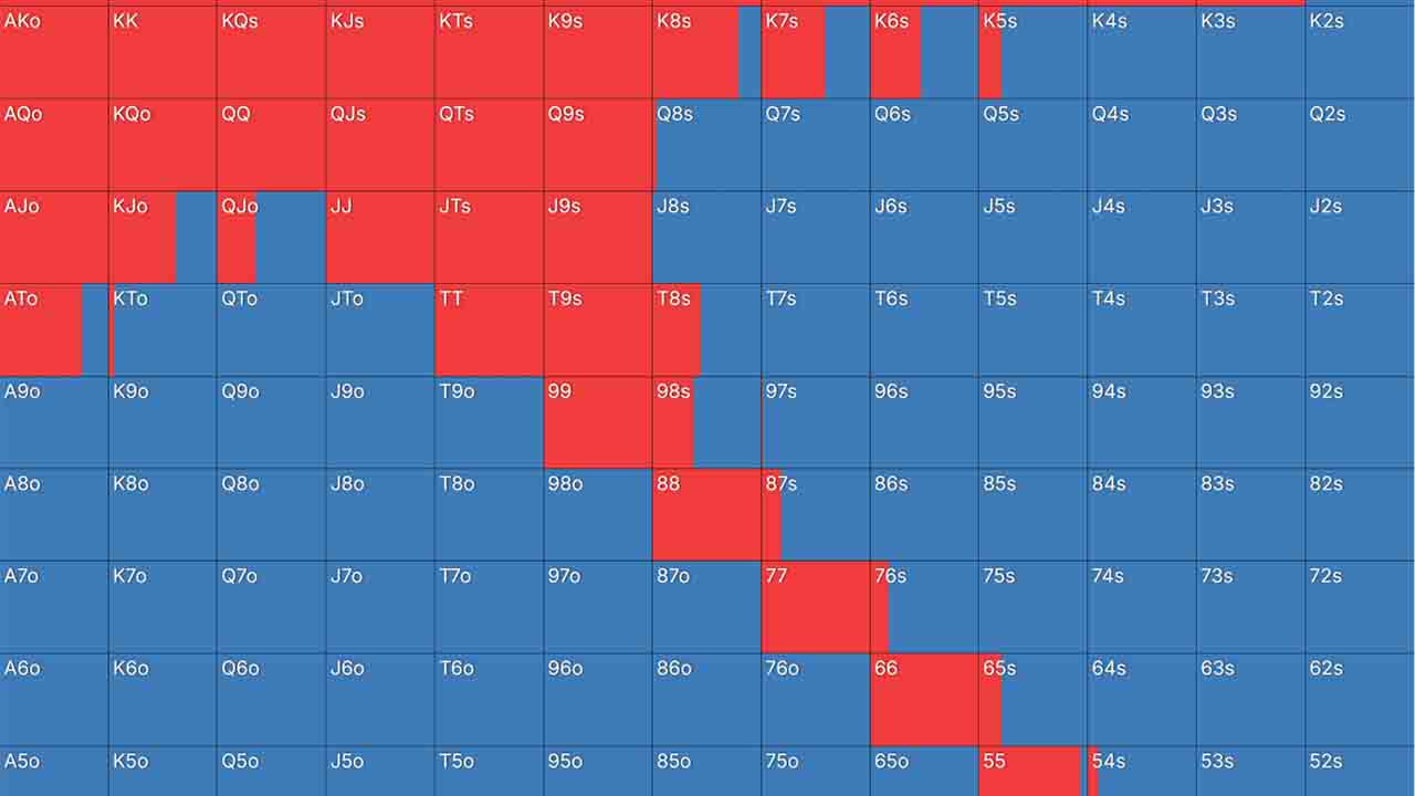 - Retirarte (fold) cuando estás fuera de posición, enfrentas un tamaño grande de subida o tu mano simplemente no está en el rango recomendado.